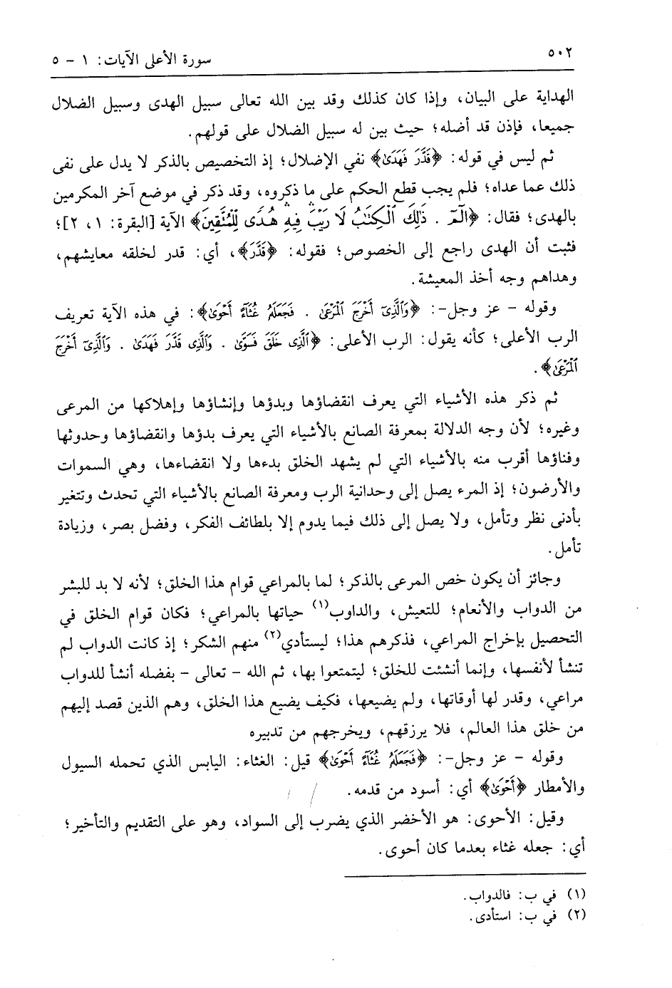وقوله - عَزَّ وَجَلَّ -: (وَالَّذِي أَخْرَجَ الْمَرْعَى (4) فَجَعَلَهُ غُثَاءً أَحْوَى) في هذه الآية تعريف الرب الأعلى؛ كأنه يقول: الرب الأعلى: (الَّذِي خَلَقَ فَسَوَّى. وَالَّذِي قَدَّرَ فَهَدَى. وَالَّذِي أَخْرَجَ الْمَرْعَى).