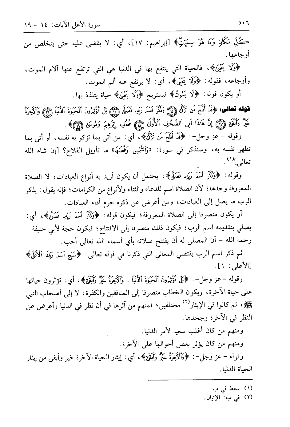 قوله تعالى: (قَدْ أَفْلَحَ مَنْ تَزَكَّى (14) وَذَكَرَ اسْمَ رَبِّهِ فَصَلَّى. بَلْ تُؤْثِرُونَ الْحَيَاةَ الدُّنْيَا. وَالْآخِرَةُ خَيْرٌ وَأَبْقَى. إِنَّ هَذَا لَفِي الصُّحُفِ الْأُولَى (18) صُحُفِ إِبْرَاهِيمَ وَمُوسَى (19).