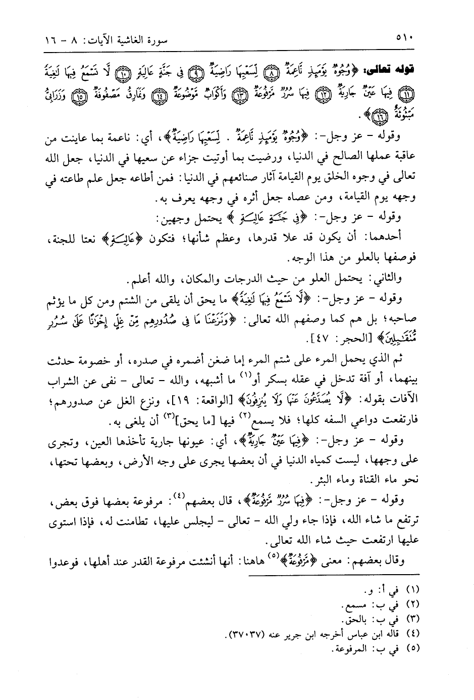 وقوله - عَزَّ وَجَلَّ -: (لَا تَسْمَعُ فِيهَا لَاغِيَةً (11) ما يحق أن يلقى من الشتم ومن كل ما يؤثم صاحبه؛ بل هم كما وصفهم اللَّه تعالى: (وَنَزَعْنَا مَا فِي صُدُورِهِمْ مِنْ غِلٍّ إِخْوَانًا عَلَى سُرُرٍ مُتَقَابِلِينَ).