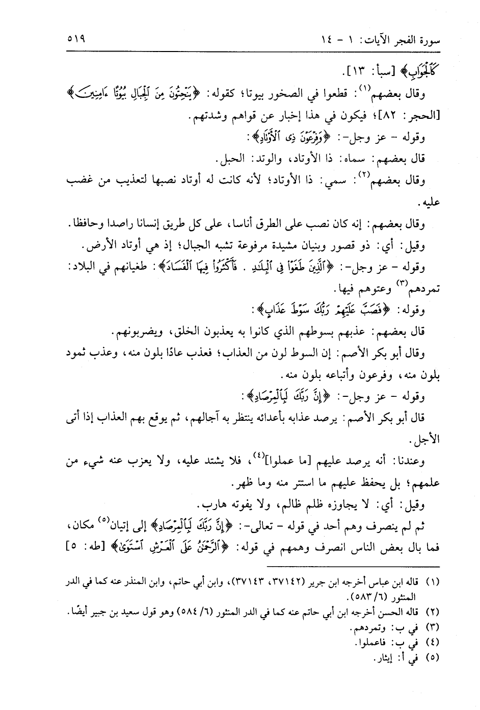 وقوله: (فَصَبَّ عَلَيْهِمْ رَبُّكَ سَوْطَ عَذَابٍ (13):