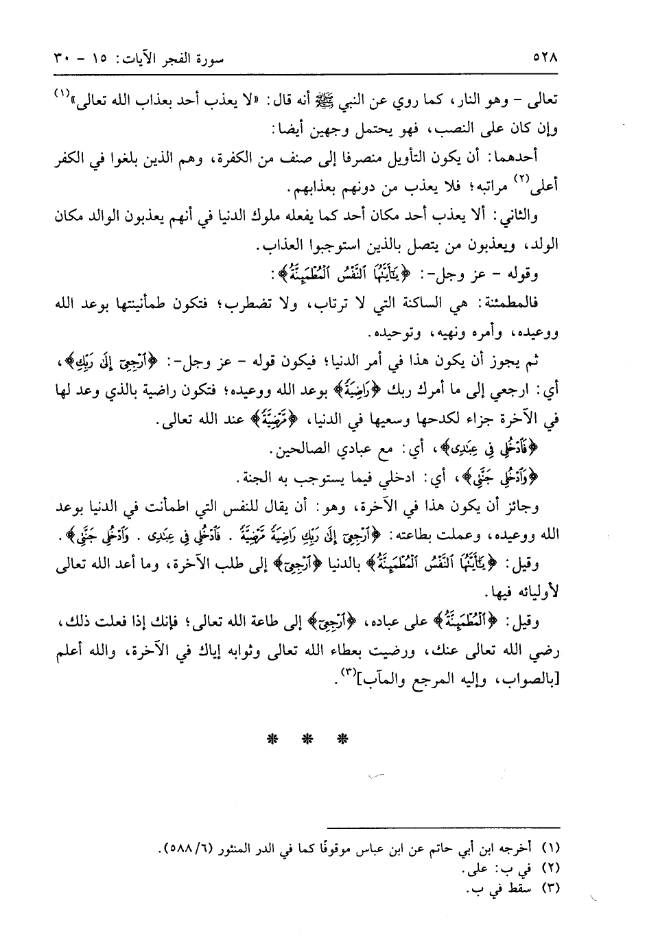 وقوله - عَزَّ وَجَلَّ -: (يَا أَيَّتُهَا النَّفْسُ الْمُطْمَئِنَّةُ (27):
