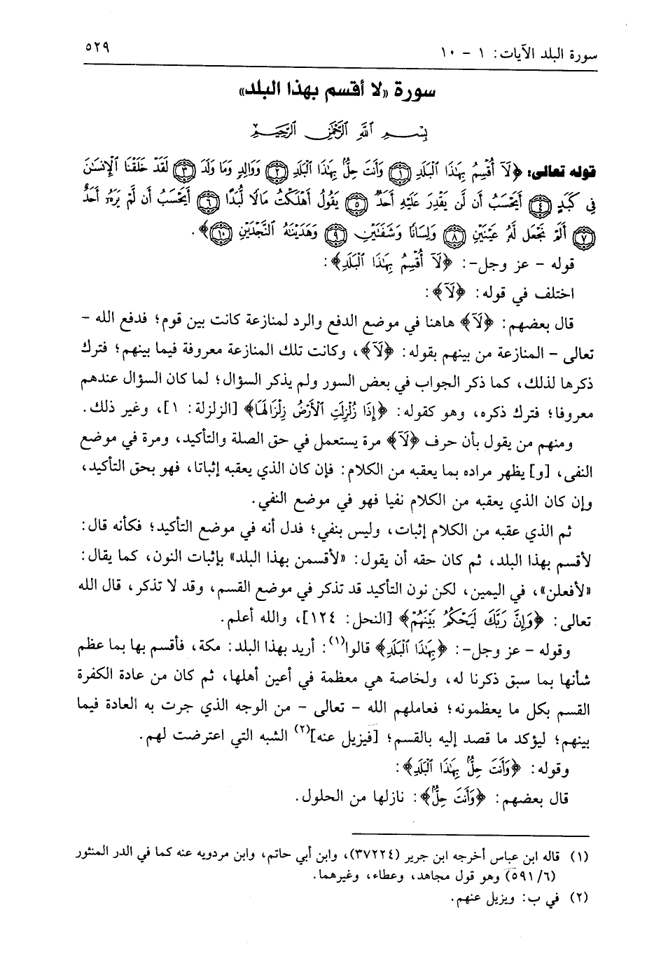 قوله - عَزَّ وَجَلَّ -: (لَا أُقْسِمُ بِهَذَا الْبَلَدِ):