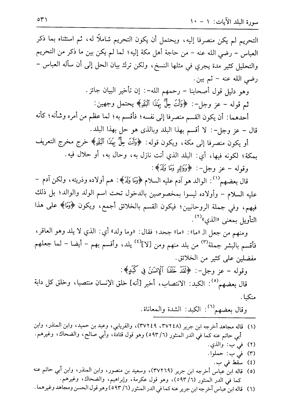ثم قوله - عَزَّ وَجَلَّ -: (وَأَنْتَ حِلٌّ بِهَذَا الْبَلَدِ) يحتمل وجهين: