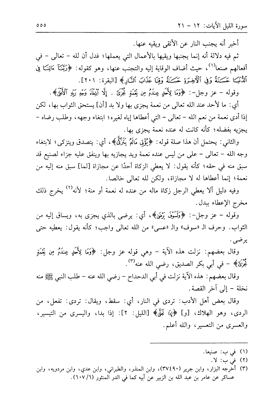 وقوله - عَزَّ وَجَلَّ -: (وَمَا لِأَحَدٍ عِنْدَهُ مِنْ نِعْمَةٍ تُجْزَى (19) إِلَّا ابْتِغَاءَ وَجْهِ رَبِّهِ الْأَعْلَى (20).