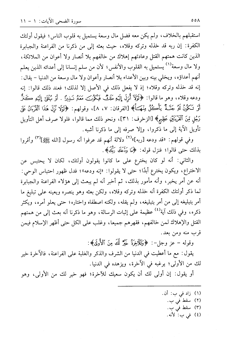 استقبلهم بالخلاف، ولم يكن معه فضل مال وسعة يستميل به قلوب الناس؛ فيقول أُولَئِكَ الكفرة: إن ربه قد خذله وتركه وقلاه، حيث بعثه إلى من ذكرنا من الفراعنة والجبابرة الذين كانت همتهم القتل وعادتهم إهلاك من خالفهم بلا أنصار ولا أعوان من الملائكة، ولا مال وسعة يستميل به القلوب والأنفس؛ لأن من سلم إنسانا إلى أعدائه الذين يعلم أنهم أعداؤه، ويخلي بينه وبين الأعداء بلا أنصار وأعوان ولا مال وسعة من الدنيا - يقال: إنه قد خذله وتركه وقلاه؛ إذ لا يفعل ذلك في الأصل إلا لذلك؛ فعند ذلك قالوا: إنه ودعه وقلاه، وهو ما قالوا: (لَوْلَا أُنْزِلَ إِلَيْهِ مَلَكٌ فَيَكُونَ مَعَهُ نَذِيرًا (7) أَوْ يُلْقَى إِلَيْهِ كَنْزٌ أَوْ تَكُونُ لَهُ جَنَّةٌ يَأْكُلُ مِنْهَا)، وقولهم: (لَوْلَا نُزِّلَ هَذَا الْقُرْآنُ عَلَى رَجُلٍ مِنَ الْقَرْيَتَيْنِ عَظِيمٍ)، ونحو ذلك مما قالوا، فلولا صرف أهل التأويل تأويل الآية إلى ما ذكروا، وإلا صرفه إلى ما ذكرنا أشبه.