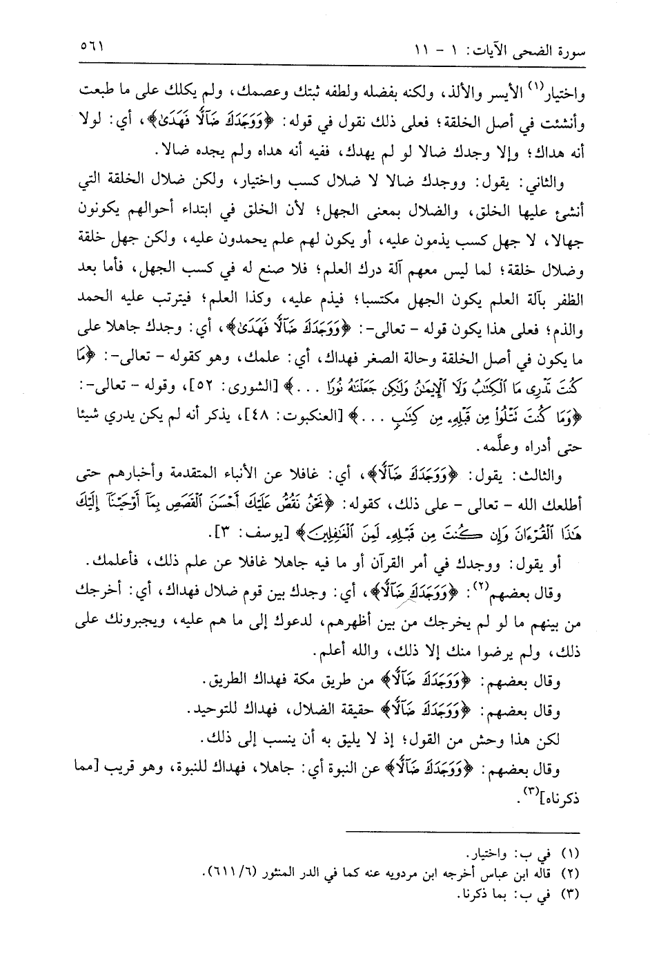 وقَالَ بَعْضُهُمْ: (وَوَجَدَكَ ضَالًّا) عن النبوة أي: جاهلا، فهداك للنبوة، وهو قريب مما ذكرناه.
