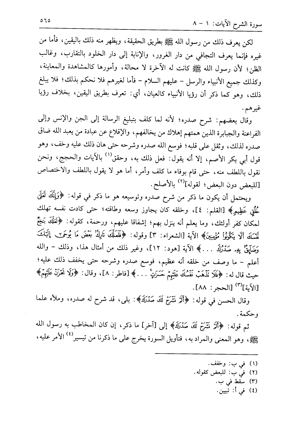 ثم قوله: (أَلَمْ نَشْرَحْ لَكَ صَدْرَكَ) إلى آخر ما ذكر، إن كان المخاطب به رسول الله - صَلَّى اللَّهُ عَلَيهِ وَسَلَّمَ -، وهو المعنيُّ والمراد به، فتأويل السورة يخرج على ما ذكرنا من تيسير الأمر عليه،