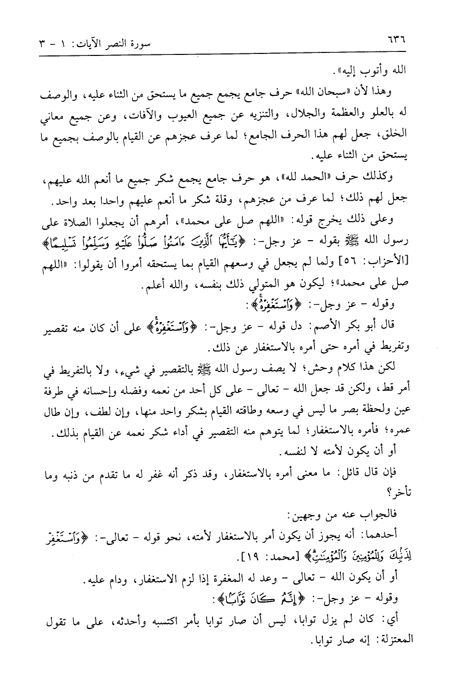 لكن هذا كلام [وخش]؛ لا يصف رسول اللَّه - صَلَّى اللَّهُ عَلَيهِ وَسَلَّمَ - بالتقصير في شيء، ولا بالتفريط في أمر قط، ولكن قد جعل اللَّه - تعالى - على كل أحد من نعمه وفضله وإحسانه في طرفة عين ولحظة بصر ما ليس في وسعه وطاقته القيام بشكر واحد منها، وإن لطف، وإن طال عمره؛ فأمره بالاستغفار؛ لما يتوهم منه التقصير في أداء شكر نعمه عن القيام بذلك.