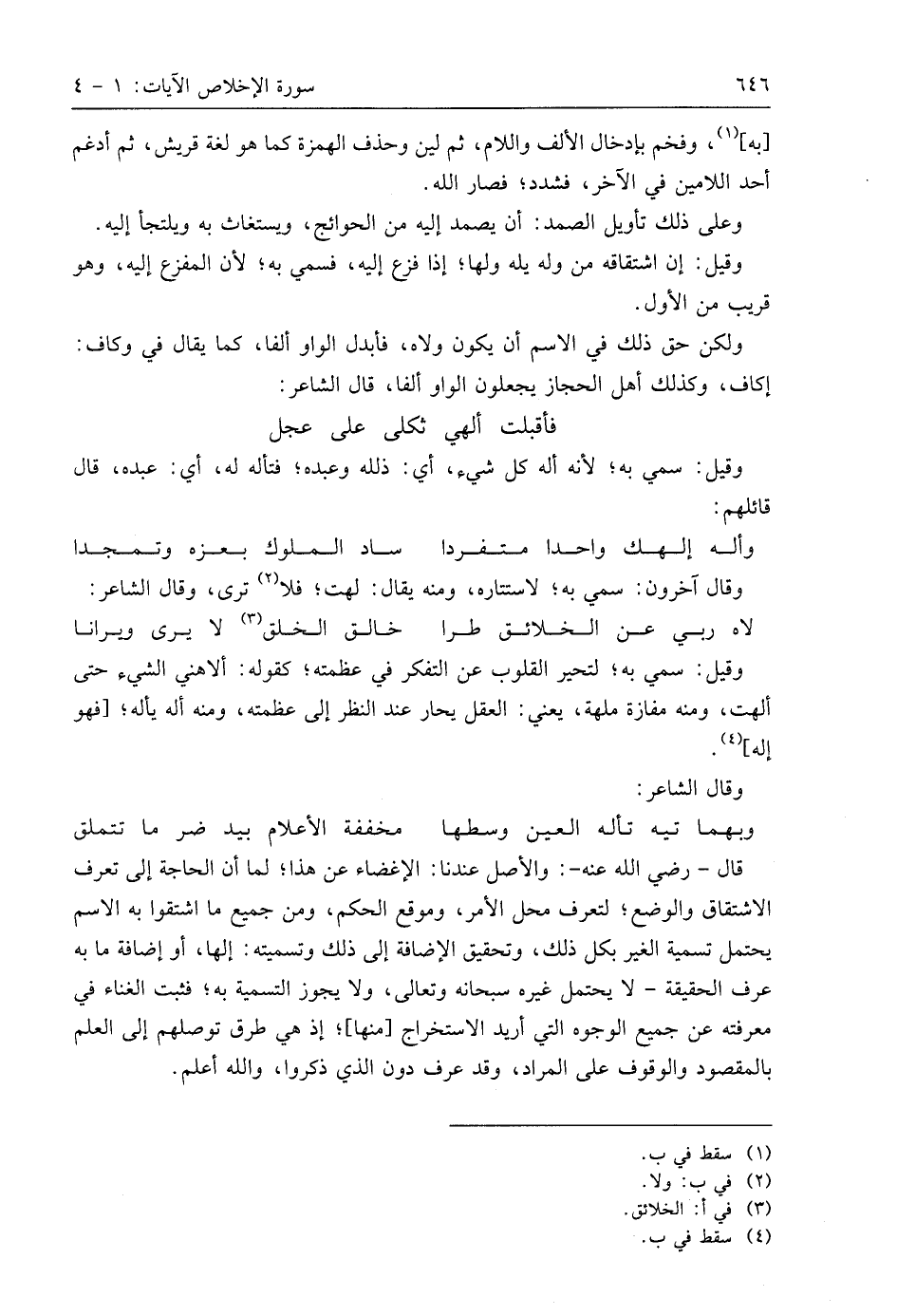 قال - رَضِيَ اللَّهُ عَنْهُ -: والأصل عندنا: الإغضاء عن هذا؛ لما أن الحاجة إلى تعَرُّف الاشتقاق والوضع؛ لتعرف محل الأمر، وموقع الحكم، ومن جميع ما اشتقوا به الاسم يحتمل تسمية الغير بكل ذلك، وتحقيق الإضافة إلى ذلك وتسميته: إلها، أو إضافة ما به عرف الحقيقة - لا يحتمل غيره سبحانه وتعالى، ولا يجوز التسمية به؛ فثبت الغَناء في معرفته عن جميع الوجوه التي أريد الاستخراج منها؛ إذ هي طرق توصلهم إلى العلم بالمقصود والوقوف على المراد، وقد عرف دون الذي ذكروا، واللَّه أعلم.