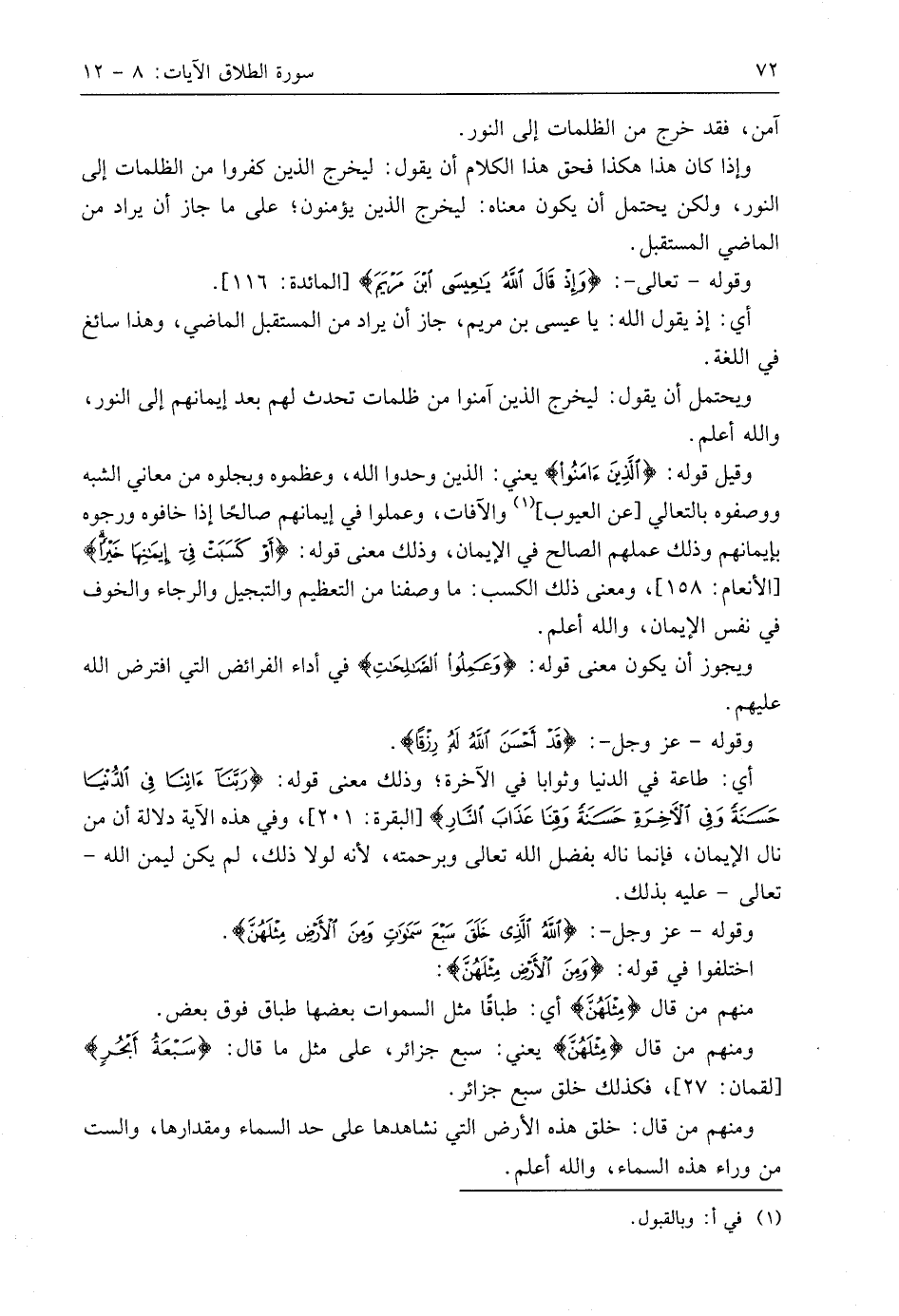 وقوله - عَزَّ وَجَلَّ -: (اللَّهُ الَّذِي خَلَقَ سَبْعَ سَمَاوَاتٍ وَمِنَ الْأَرْضِ مِثْلَهُنَّ يَتَنَزَّلُ الْأَمْرُ بَيْنَهُنَّ لِتَعْلَمُوا أَنَّ اللَّهَ عَلَى كُلِّ شَيْءٍ قَدِيرٌ وَأَنَّ اللَّهَ قَدْ أَحَاطَ بِكُلِّ شَيْءٍ عِلْمًا (12).