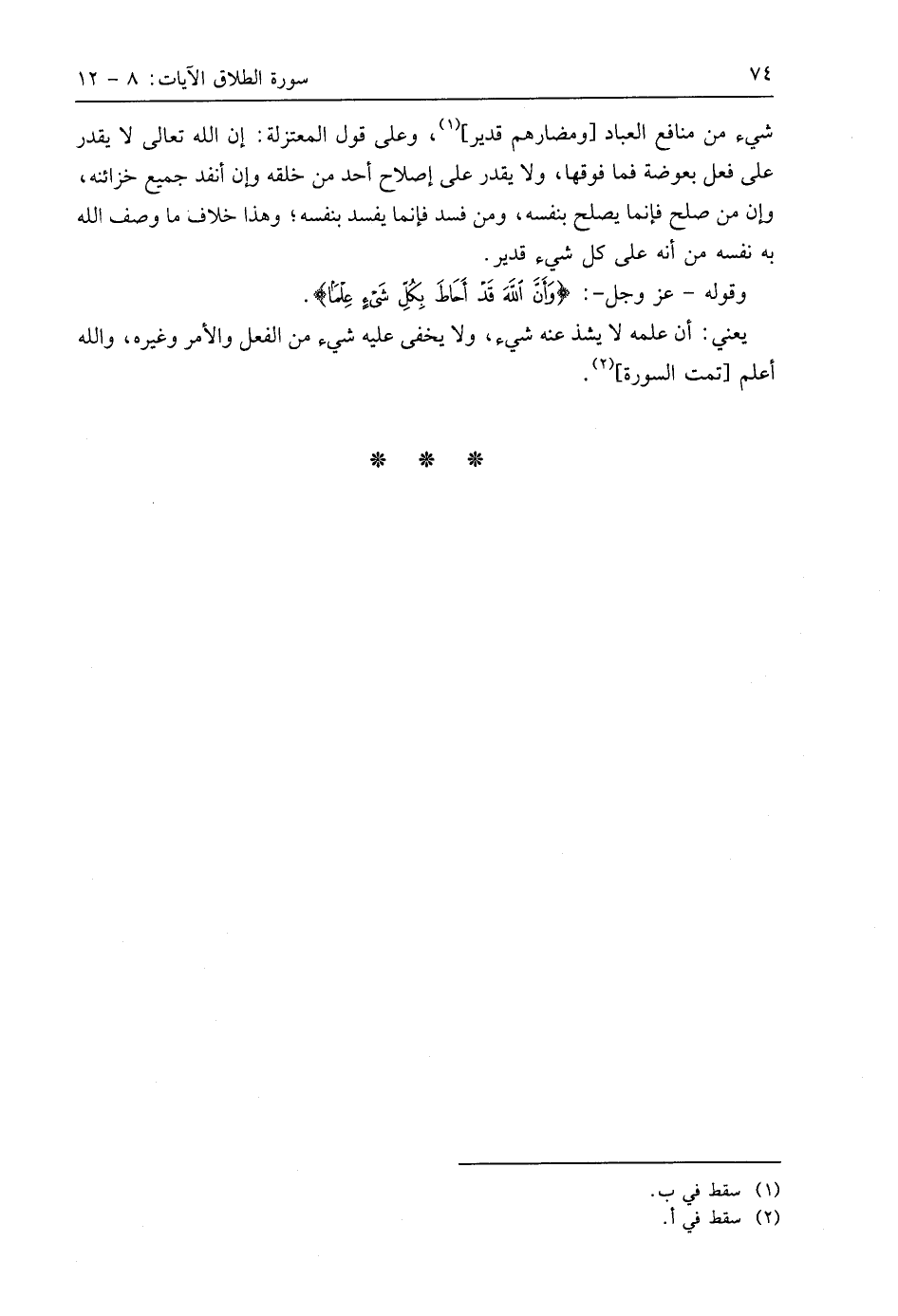 وقوله - عَزَّ وَجَلَّ -: (وَأَنَّ اللَّهَ قَدْ أَحَاطَ بِكُلِّ شَيْءٍ عِلْمًا).