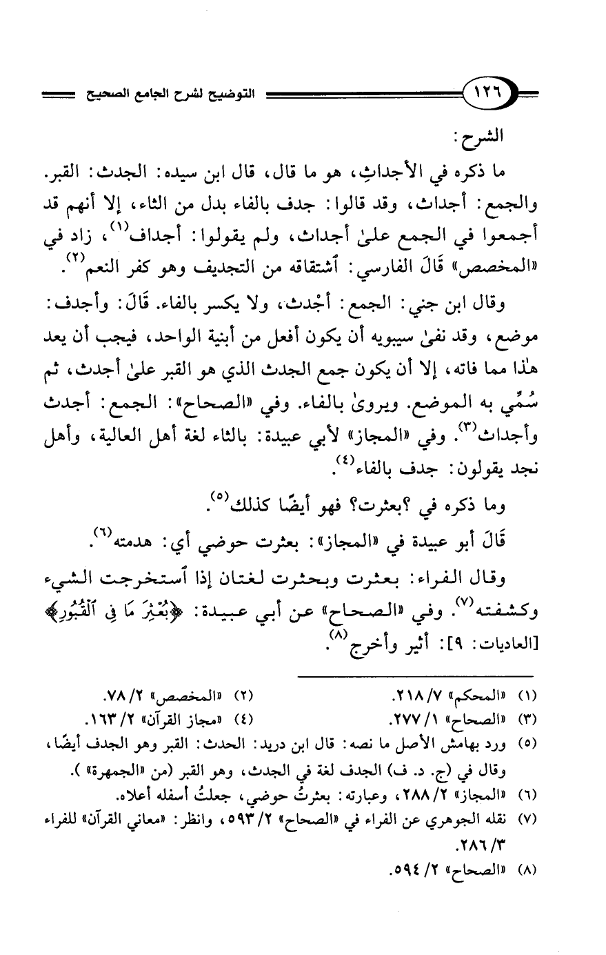 (¬5) ورد بهامش الأصل ما نصه: قال ابن دريد: الحدث: القبر وهو الجدف أيضًا، وقال في (ج. د. ف) الجدف لغة في الجدث، وهو القبر (من "الجمهرة").