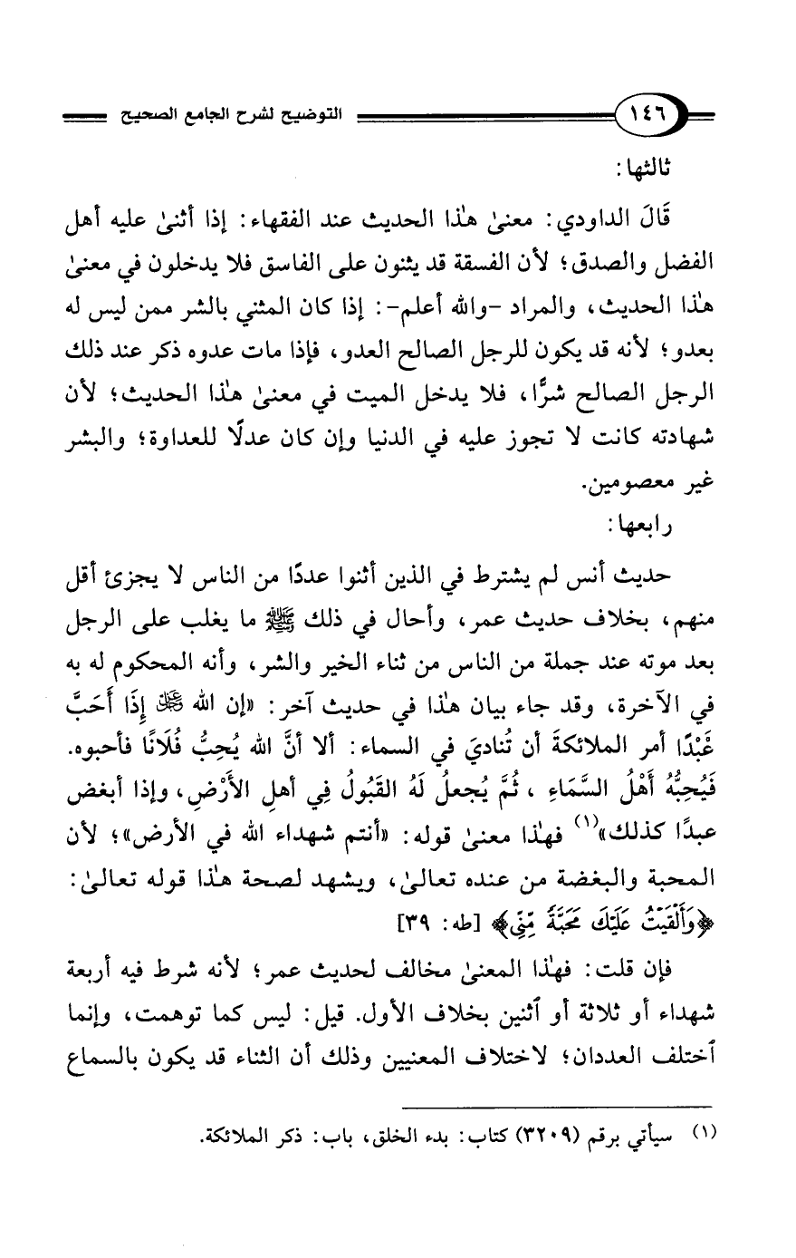 فإن قلت: فهذا المعنى مخالف لحديث عمر؛ لأنه شرط فيه أربعة شهداء أو ثلاثة أو اثنين بخلاف الأول. قيل: ليس كما توهمت، وإنما اختلف العددان؛ لاختلاف المعنيين وذلك أن الثناء قد يكون بالسماع