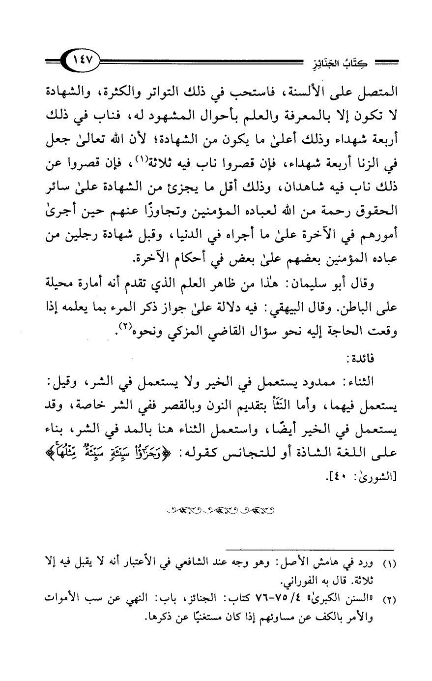 (¬2) "السنن الكبرى" 4/ 75 - 76 تقال: الجنائز، باب: النهي عن سب الأموات والأمر بالكف عن مساوئهم إذا كان مستغنيًا عن ذكرها.