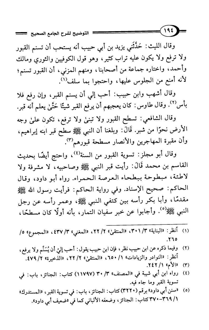 (¬5) "سنن أبي داود" برقم (3220) كتاب: الجنائز، باب: في تسوية القبر، "المستدرك" 1/ 369 - 370 كتاب: الجنائز، وضعفه الألباني كما في "ضعيف أبي داود".