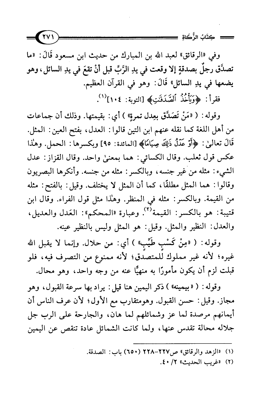 (¬1) "الزهد والرقائق" ص 227 - 228 (650) باب: الصدقة.