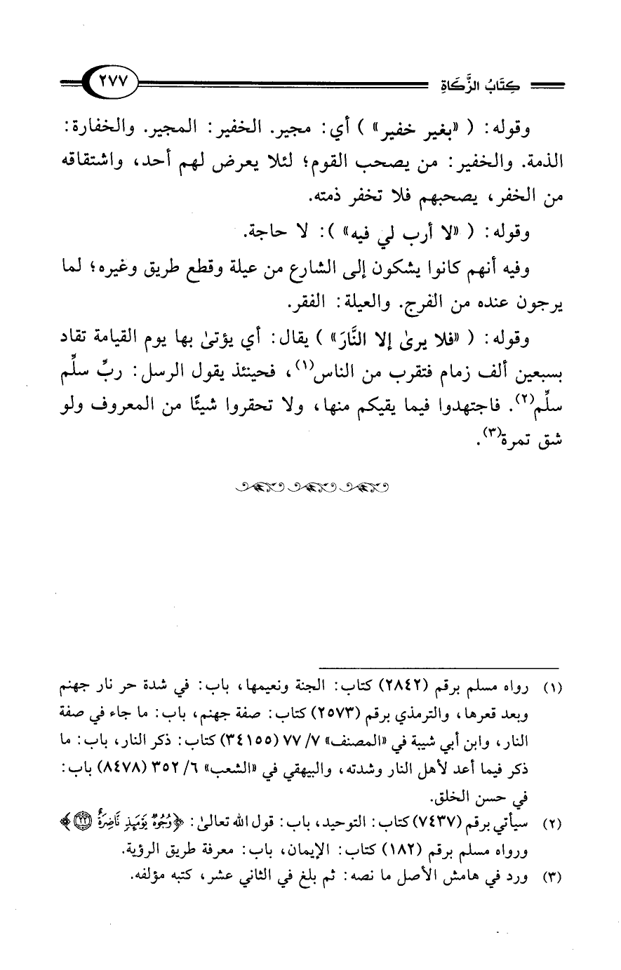 وقوله: ("بغير خفير") أي: مجير. الخفير: المجير. والخفارة: الذمة. والخفير: من يصحب القوم؛ لئلا يعرض لهم أحد، واشتقاقه من الخفر، يصحبهم فلا تخفر ذمته.