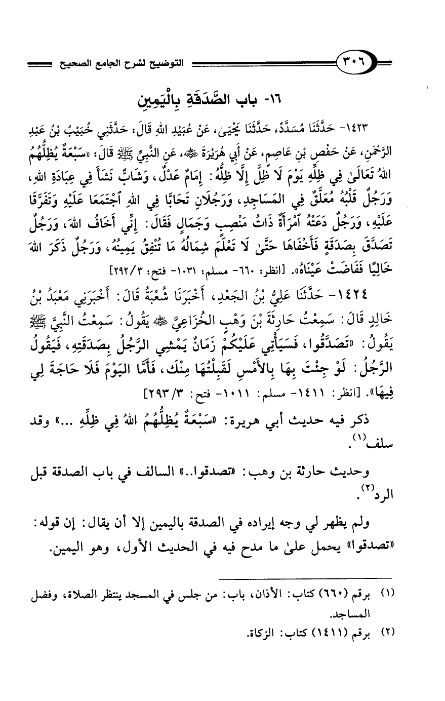 16 - باب الصَّدَقَةِ بِاليَمِينِ