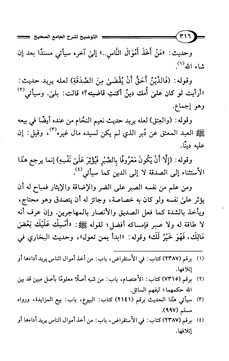 (¬4) برقم (2387) كتاب: في الاستقراض، باب: من أخذ أموال الناس يريد أداءها أو إتلافها.