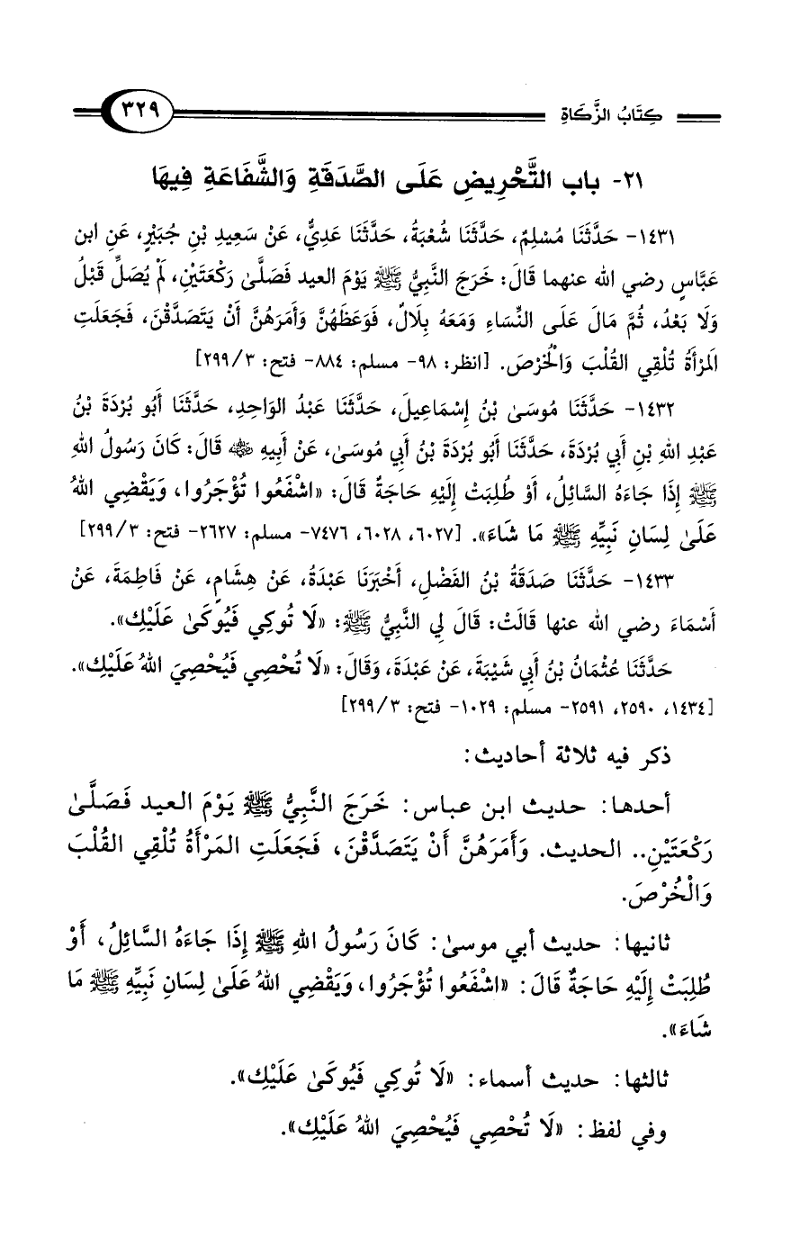 21 - باب التَّحْرِيضِ عَلَى الصَّدَقَةِ وَالشَّفَاعَةِ فِيهَا
