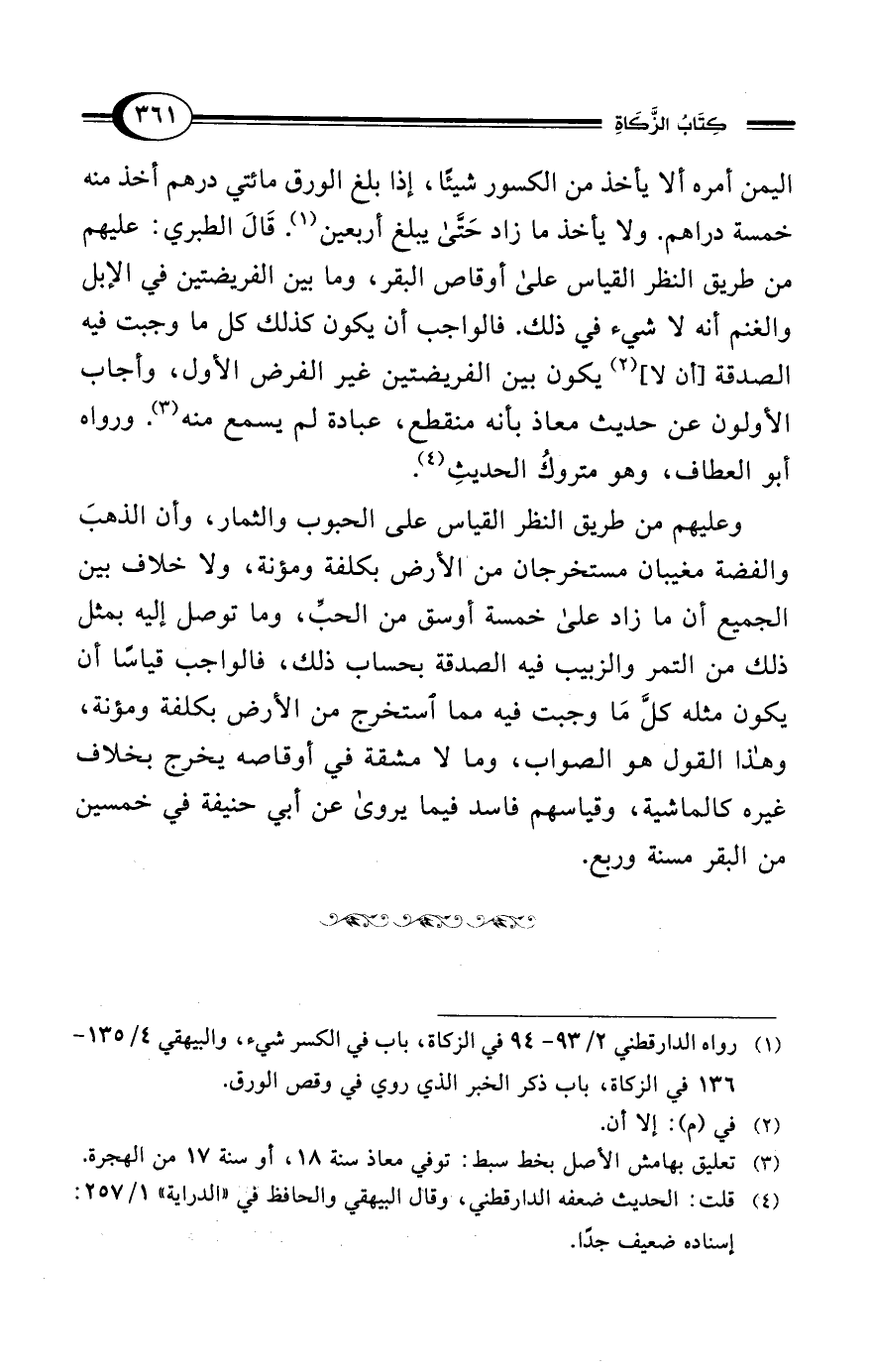 (¬1) رواه الدارقطني 2/ 93 - 94 في الزكاة، باب في الكسر شيء، والبيهقي 4/ 135 - 136 في الزكاة، باب ذكر الخبر الذي روي في وقص الورق.