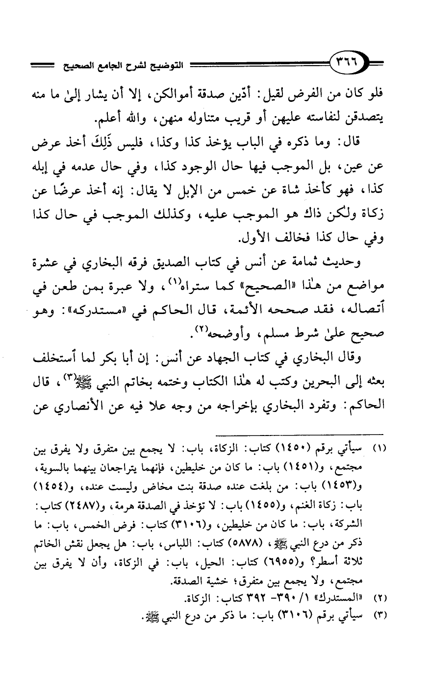 (¬1) سيأتي برقم (1450) كتاب: الزكاة، باب: لا يجمع بين متفرق ولا يفرق بين مجتمع، و (1451) باب: ما كان من خليطين، فإنهما يتراجعان بينهما بالسوية، و (1453) باب: من بلغت عنده صدقة بنت مخاض وليست عنده، و (1454) باب: زكاة الغنم، و (1455) باب: لا تؤخذ في الصدقة هرمة، و (2487) كتاب: الشركة، باب: ما كان من خليطين، و (3106) كتاب: فرض الخمس، باب: ما ذكر من درع النبي - صلى الله عليه وسلم -، (5878) كتاب: اللباس، باب: هل يجعل نقش الخاتم ثلاثة أسطر؟ و (6955) كتاب: الحيل، باب: في الزكاة، وأن لا يفرق بين مجتمع، ولا يجمع بين متفرق؛ خشية الصدقة.