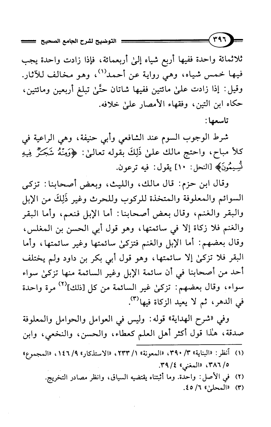 شرط الوجوب السوم عند الشافعي وأبي حنيفة، وهي الراعية في كلأ مباح، واحتج مالك على ذَلِكَ بقوله تعالى: {وَمِنْهُ شَجَرٌ فِيهِ تُسِيمُونَ} [النحل: 10] يقول: فيه ترعون.