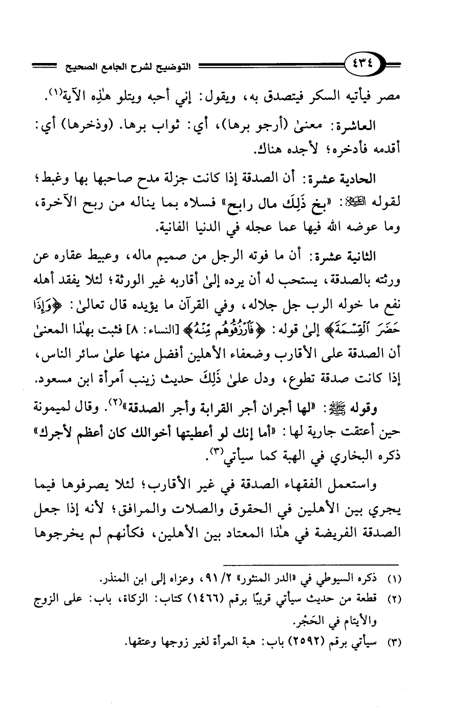 وقوله - صلى الله عليه وسلم -: "لها أجران أجر القرابة وأجر الصدقة" (¬2). وقال لميمونة عن أعتقت جارية لها: "أما إنك لو أعطيتها أخوالك كان أعظمْ لأجرك" ذكره البخاري في الهبة كما سيأتي (¬3).