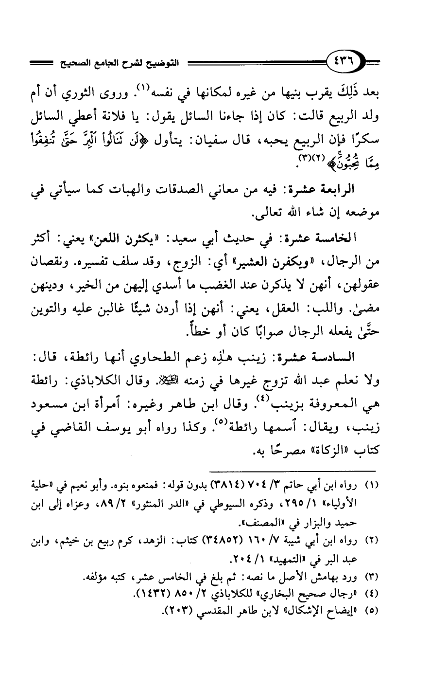 الرابعة عشرة: فيه من معاني الصدقات والهبات كما سيأتي في موضعه إن شاء الله تعالى.