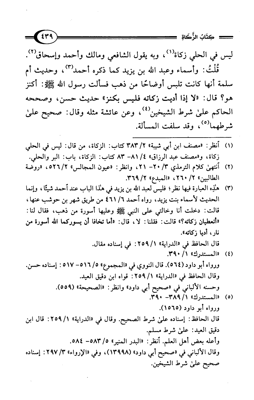 (¬1) انظر: "مصنف ابن أبي شيبة" 2/ 383 كتاب: الزكاة، من قال: ليس في الحلي زكاة، و"مصنف عبد الرزاق" 4/ 81 - 83 كتاب: الزكاة، باب: البر والحلي.
