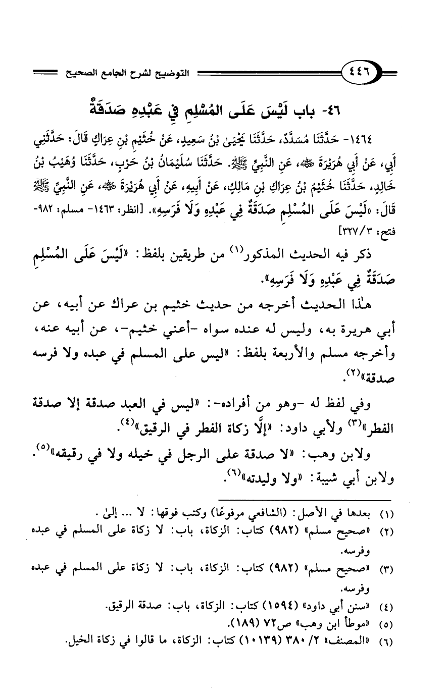 (¬3) "صحيح مسلم" (982) كتاب: الزكاة، باب: لا زكاة على المسلم في عبده وفرسه.