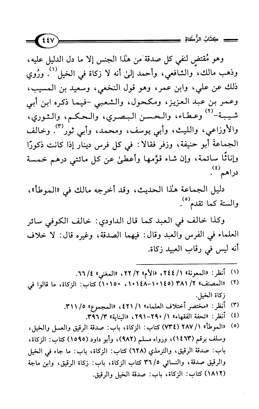(¬5) "الموطأ" 1/ 287 (734) كتاب: الزكاة، باب: صدقة الرقيق والعسل والخيل، وسلف برقم (1463)، ورواه مسلم (982)، وأبو داود (1595) كتاب: الزكاة، باب: صدقة الرقيق، والترمذي (628) كتاب: الزكاة، باب: ما جاء في الخيل والرقيق صدقة، والنسائي 5/ 36 كتاب الزكاة، باب: زكاة الرقيق، وابن ماجة (1812) كتاب: الزكاة، باب: صدقة الخيل والرقيق.