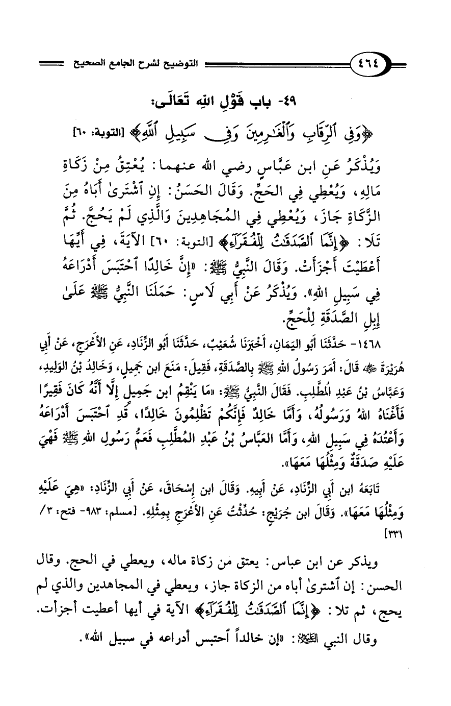 49 - باب قَوْلِ اللهِ تَعَالَى: {وَفِي الرِّقَابِ وَالْغَارِمِينَ وَفِي سَبِيلِ اللَّهِ} [التوبة: 60]