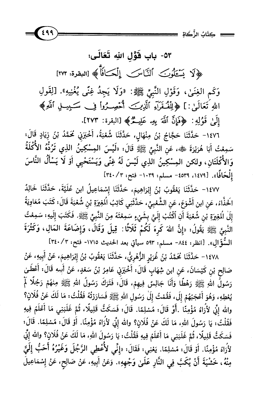 53 - باب قَوْلِ اللهِ تَعَالَى: {لاَ يَسْأَلُونَ النَّاسَ إِلْحَافًا} [البقرة: 273]