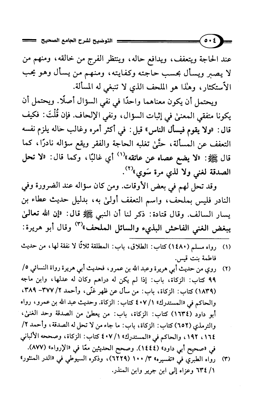 عند الحاجة ويتعفف، ويدافع حاله، وينتظر الفرج من خالقه، ومنهم من لا يصبر ويسأل بحسب حاجته، وكفايته، ومنهم من يسأل وهو يحب الاستكثار، وهذا هو الملحف الذي لا تنبغي له المسألة.