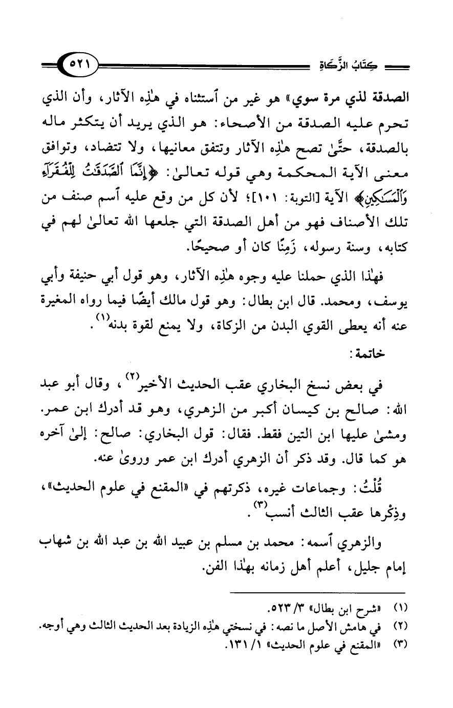 فهذا الذي حملنا عليه وجوه هذِه الآثار، وهو قول أبي حنيفة وأبي يوسف، ومحمد. قال ابن بطال: وهو قول مالك أيضًا فيما رواه المغيرة عنه أنه يعطى القوي البدن من الزكاة، ولا يمنع لقوة بدنه (¬1).