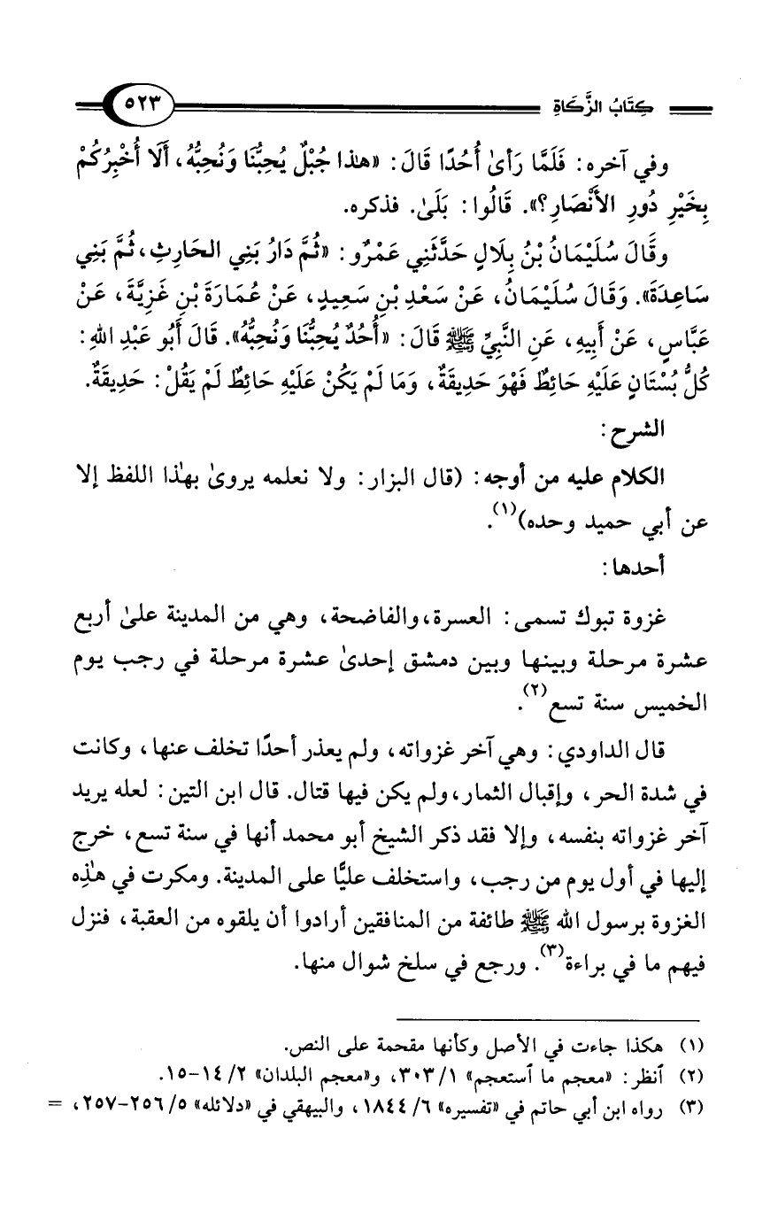 وقًالَ سُلَيْمَانُ بْنُ بِلَالٍ حَدَّثَنِي عَمْروٌ: "ثُمَّ دَارُ بَنِي الحَارِثِ، ثُمَّ بَنِي سَاعِدَةَ". وَقَالَ سُلَيْمَانُ، عَنْ سَعْدِ بْنِ سَعِيدٍ، عَنْ عُمَارَةَ بْنِ غزيَّةَ، عَنْ عَبَّاسٍ، عَنْ أَبِيهِ، عَنِ النَّبِيِّ - صلى الله عليه وسلم - قَالَ: "أُحُدٌ يُحِبُّنَا وَنُحِبُّهُ". قَالَ أَبُو عَبْدِ الله: كُلُّ بُسْتَانٍ عَلَيْهِ حَائِطٌ فَهْوَ حَدِيقَةٌ، وَمَا لَمْ يَكُنْ عَلَيْهِ حَائِطٌ لَمْ يَقُلْ: حَدِيقَةٌ.