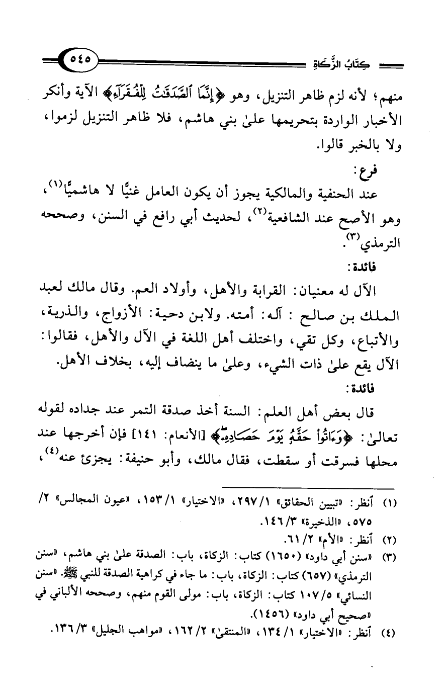 (¬3) "سنن أبي داود" (1650) كتاب: الزكاة، باب: الصدقة على بني هاشم، "سنن الترمذي" (657) كتاب: الزكاة، باب: ما جاء في كراهية الصدقة للنبي - صلى الله عليه وسلم - "سنن النسائي" 5/ 107 كتاب: الزكاة، باب: مولى القوم منهم، وصححه الألباني في "صحيح أبي داود" (1456).