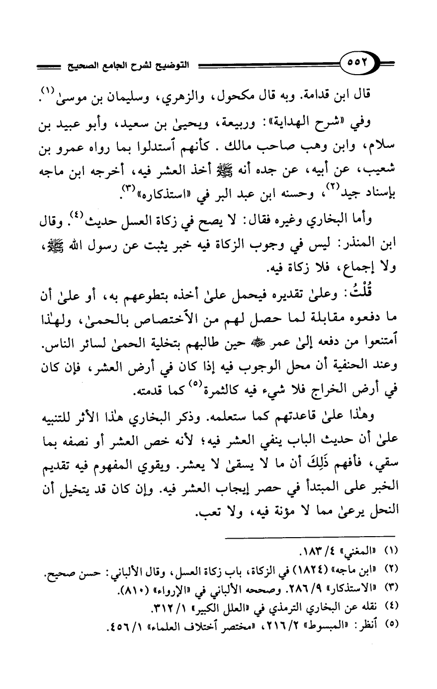 (¬2) "ابن ماجه" (1824) في الزكاة، باب زكاة العسل، وقال الألباني: حسن صحيح.