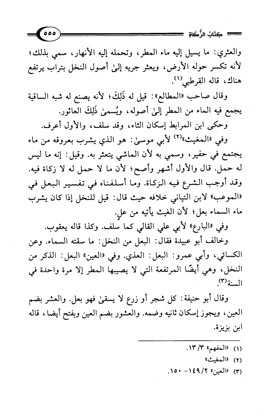 وقال أبو حنيفة: كل شجر أو زرع لا يسقى فهو بعل. والعشر بضم العين، ويجوز إسكان ثانيه وضمه. والعشور بضم العين وبفتح أيضًا، قاله ابن بزيزة.