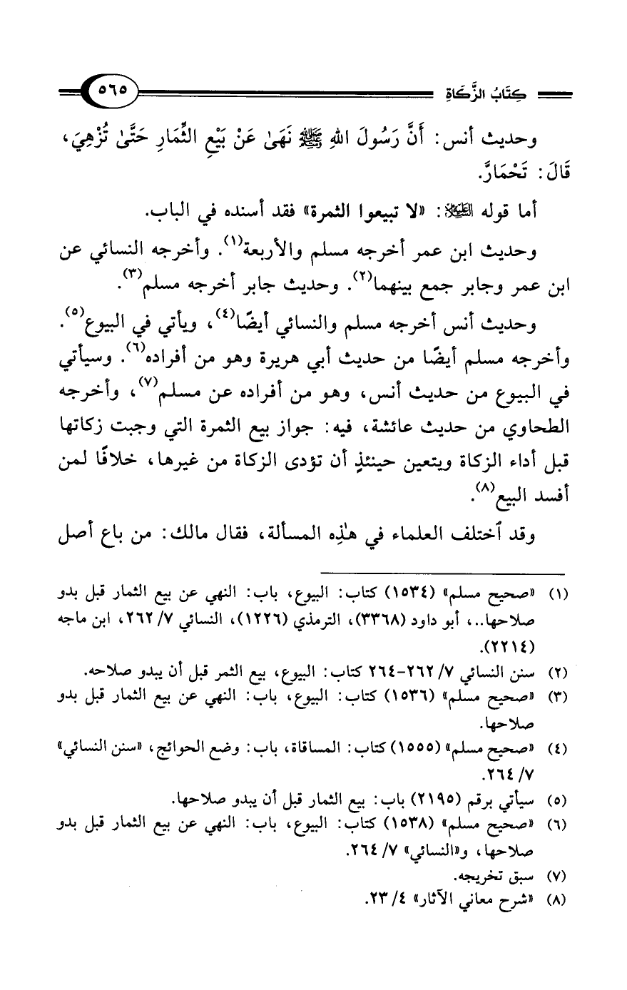 (¬6) "صحيح مسلم" (1538) كتاب: البيوع، باب: النهي عن بيع الثمار قبل بدو صلاحها، و"النسائي" 7/ 264.