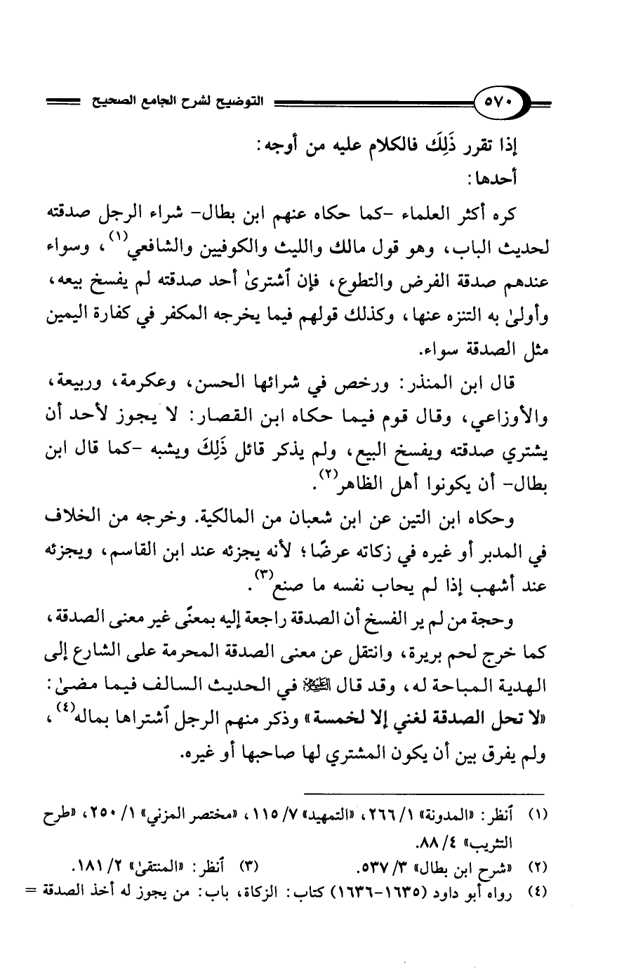 قال ابن المنذر: ورخص في شرائها الحسن، وعكرمة، وربيعة، والأوزاعي، وقال قوم فيما حكاه ابن القصار: لا يجوز لأحد أن يشتري صدقته ويفسخ البيع، ولم يذكر قائل ذَلِكَ ويشبه -كما قال ابن بطال- أن يكونوا أهل الظاهر (¬2).