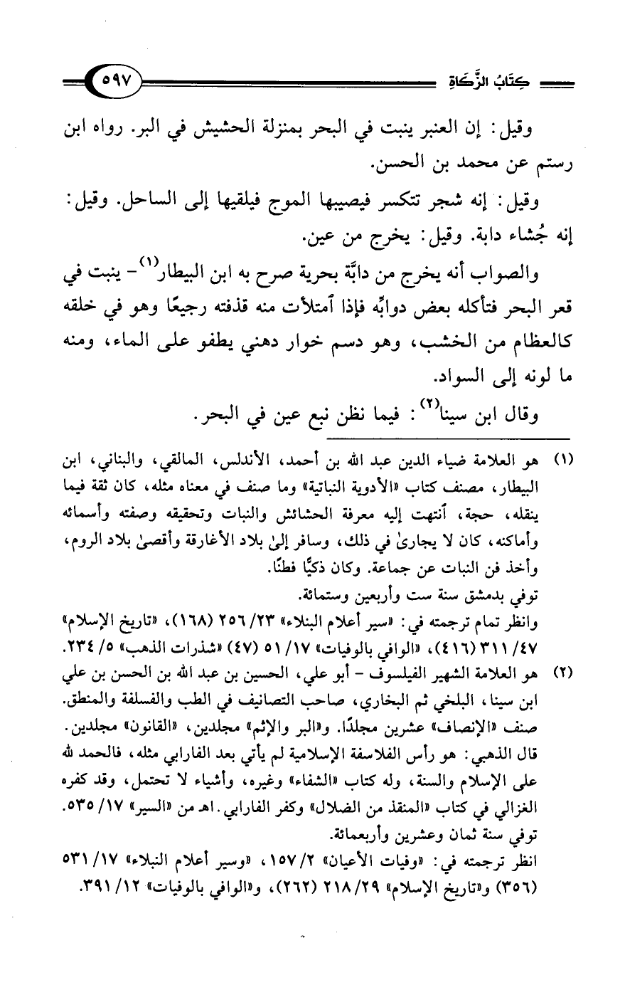وقيل: إن العنبر ينبت في البحر بمنزلة الحشيش في البر. رواه ابن رستم عن محمد بن الحسن.