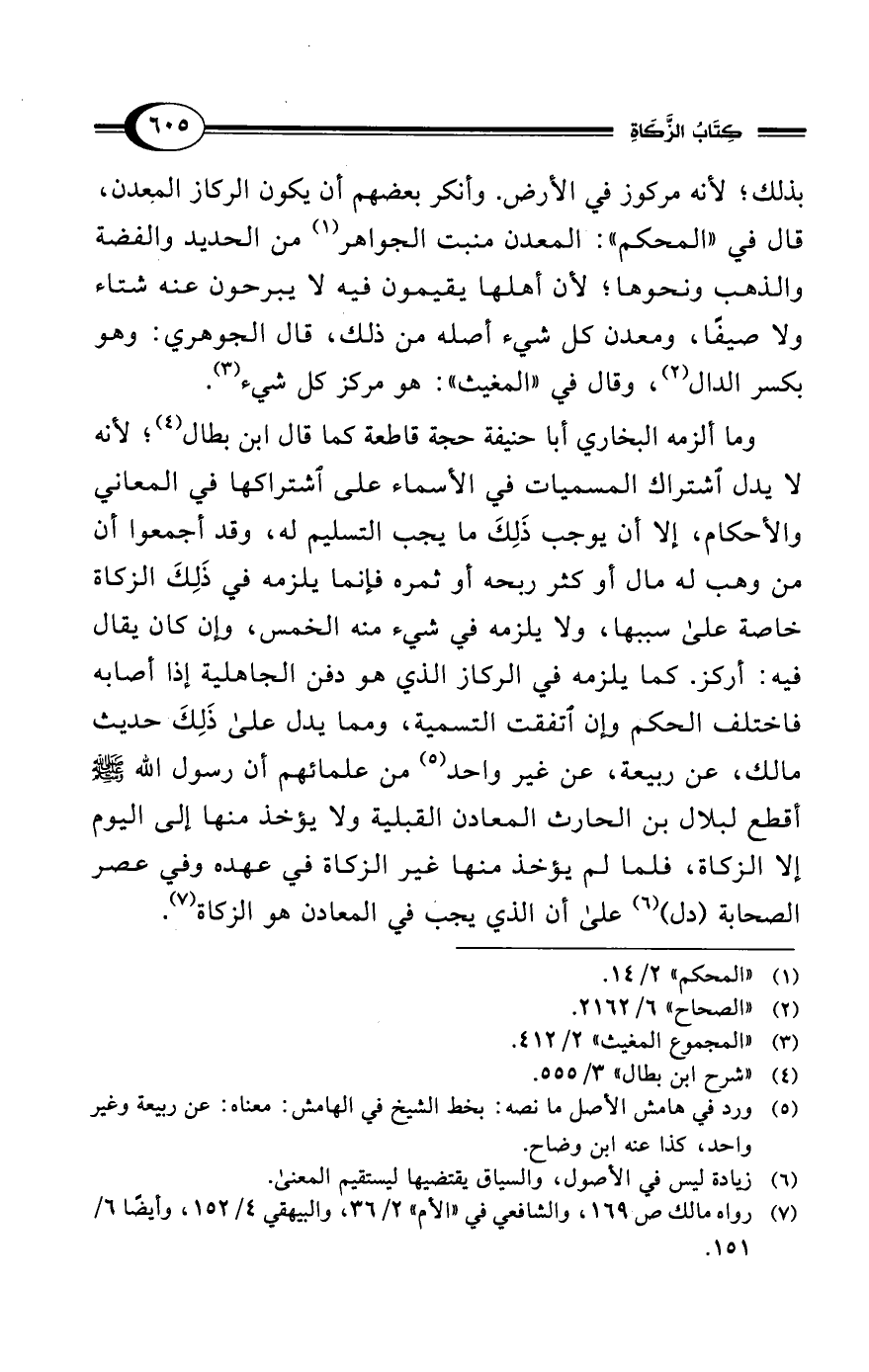 وما ألزمه البخاري أبا حنيفة حجة قاطعة كما قال ابن بطال (¬4)؛ لأنه لا يدل اشتراك المسميات في الأسماء على اشتراكها في المعاني والأحكام، إلا أن يوجب ذَلِكَ ما يجب التسليم له، وقد أجمعوا أن من وهب له مال أو كثر ربحه أو ثمره فإنما يلزمه في ذَلِكَ الزكاة خاصة على سببها، ولا يلزمه في شيء منه الخمس، وإن كان يقال فيه: أركز. كما يلزمه في الركاز الذي هو دفن الجاهلية إذا أصابه فاختلف الحكم وإن اتفقت التسمية، ومما يدل على ذَلِكَ حديث مالك، عن ربيعة، عن غير واحد (¬5) من علمائهم أن رسول الله - صلى الله عليه وسلم - أقطع لبلال بن الحارث المعادن القبلية ولا يؤخذ منها إلى اليوم إلا الزكاة، فلما لم يؤخذ منها غير الزكاة في عهده وفي عصر الصحابة (دل) (¬6) على أن الذي يجب في المعادن هو الزكاة (¬7).