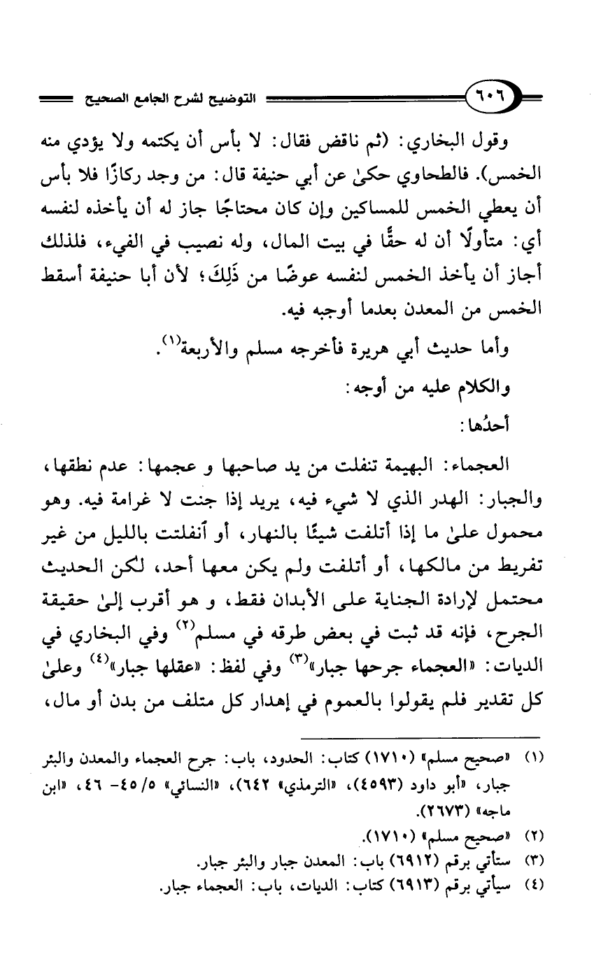 (¬1) "صحيح مسلم" (1710) كتاب: الحدود، باب: جرح العجماء والمعدن والبئر جبار، أبو داود (4593)، "الترمذي" 642، "النسائي" 5/ 45 - 46، "ابن ماجه" (2673).