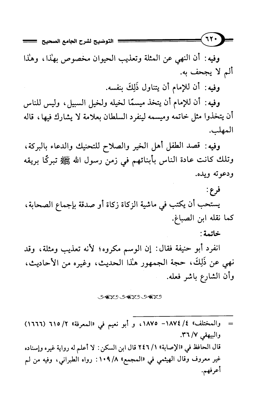 انفرد أبو حنيفة فقال: إن الوسم مكروه؛ لأنه تعذيب ومثلة، وقد نهي عن ذَلِكَ، حجة الجمهور هذا الحديث، وغيره من الأحاديث، وأن الشارع باشر فعله.