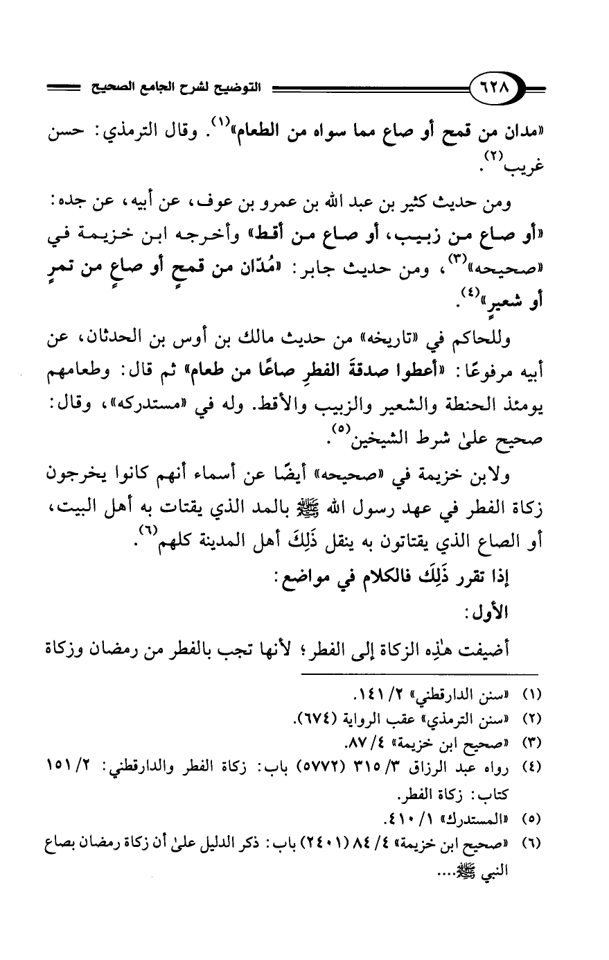 (¬6) "صحيح ابن خزيمة" 84/ 4 (2401) باب: ذكر الدليل على أن زكاة رمضان بصاع النبي - صلى الله عليه وسلم - ....