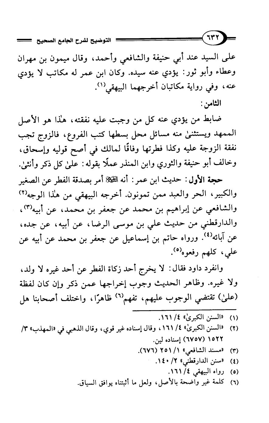 حجة الأول: حديث ابن عمر: أنه - عليه السلام - أمر بصدقة الفطر عن الصغير والكبير، الحر والعبد ممن تمونون. أخرجه البيهقي من هذا الوجه (¬2) والشافعي عن إبراهيم بن محمد عن جعفر بن محمد، عن أبيه (¬3)، والدارقطني من حديث علي بن موسى الرضا، عن أبيه، عن جده، عن آبائه (¬4). ورواه حاتم بن إسماعيل عن جعفر بن محمد عن أبيه عن علي، كلهم رفعوه (¬5).