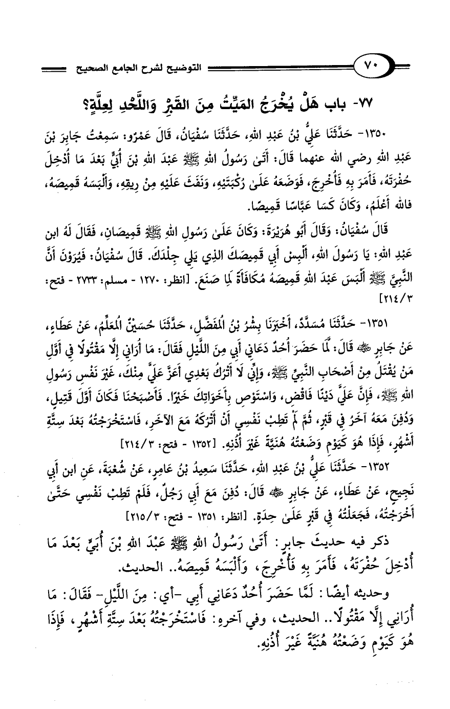 77 - باب هَلْ يُخْرَجُ المَيِّتُ مِنَ القَبْرِ وَاللَّحْدِ لِعِلَّةٍ؟