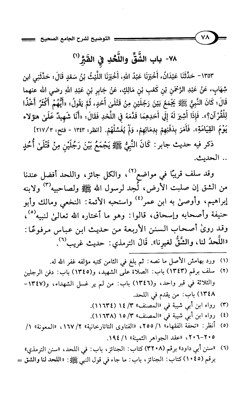 (¬6) "سنن أبي داود" برقم (3208) كتاب: الجنائز، باب: في اللحد، "سنن الترمذي" برقم (1045) كتاب: الجنائز، باب: ما جاء في قول النبي - صلى الله عليه وسلم -: "اللحد لنا والشق =